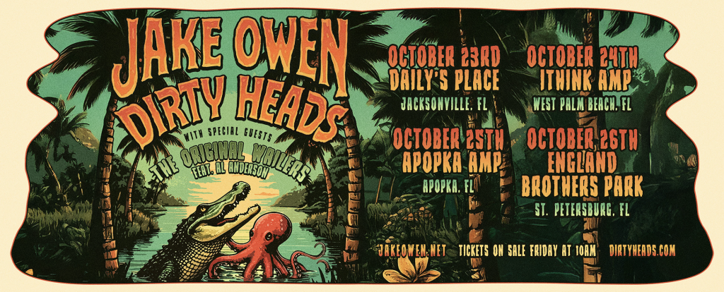 The collaborative concert with Jake Owen, The Dirty Heads, and The Original Wailers ft. Al Anderson will kick off in Jacksonville, Florida, on October 23 and conclude in Pinellas Park, Florida, on October 26. Attendees will have a variety of opportunities to see them at the following locations: